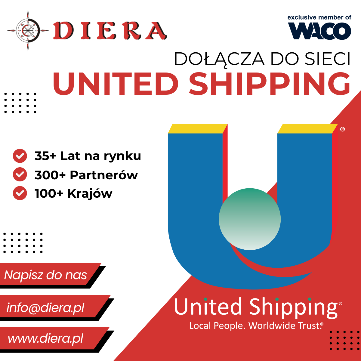 Z przyjemnością informujemy, że od 2026 roku firma DIERA oficjalnie stała się częścią międzynarodowej sieci logistycznej United Shipping.